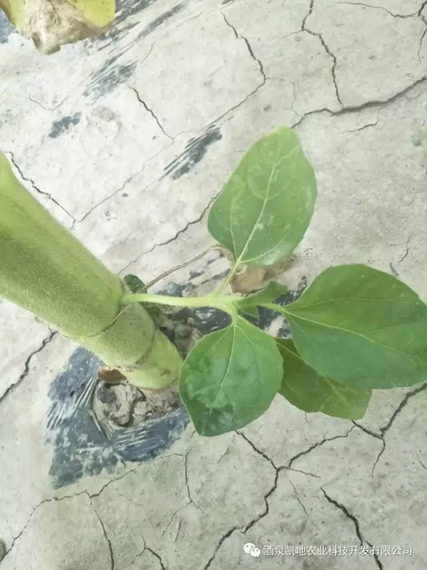 1、向日葵出苗后遭受凍害或低溫冷害等,造成幼苗生長發(fā)育遲緩,在子葉或真葉腋芽處易出現(xiàn)營養(yǎng)枝;