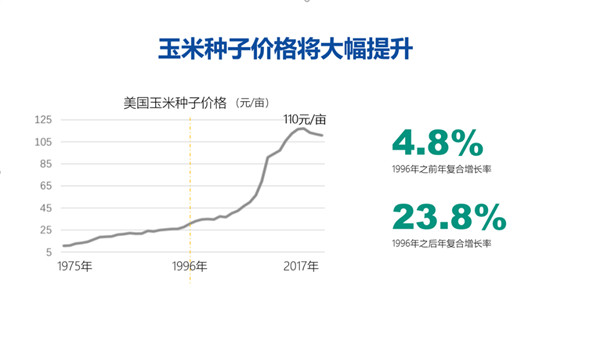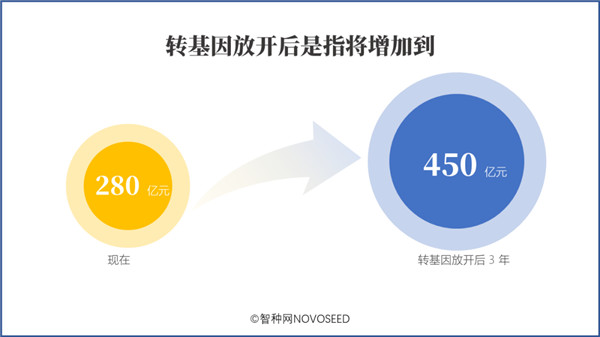 轉(zhuǎn)基因種子放開三年后,玉米種業(yè)市值將增長(zhǎng)到 450 億元。