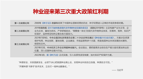 轉(zhuǎn)基因產(chǎn)業(yè)化將深刻改變種業(yè)發(fā)展方向和行業(yè)格局,我國(guó)種業(yè)未來升級(jí)發(fā)展的核心動(dòng)能。